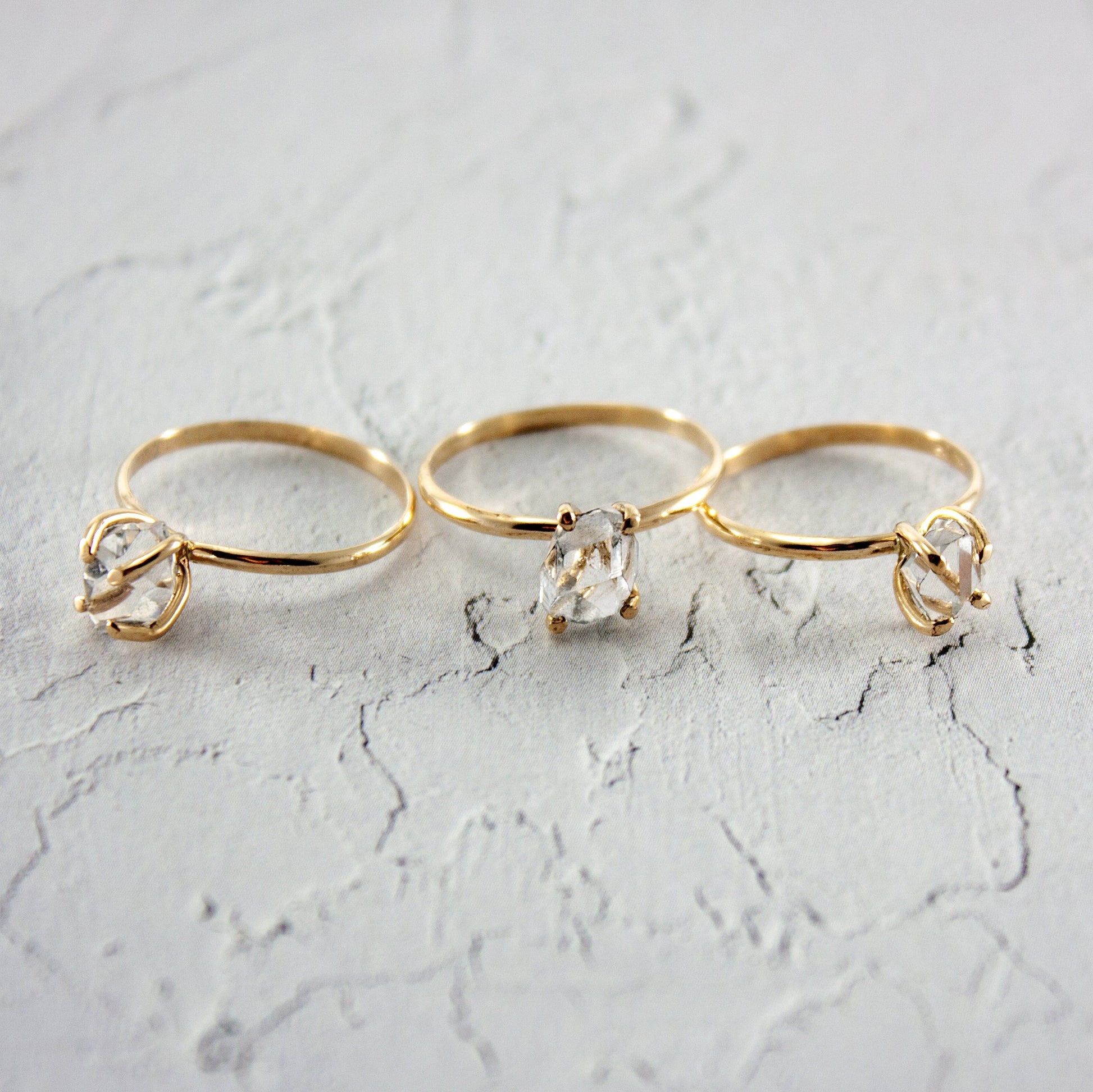 Raw Herkimer Diamond 14k Gold Filled Prong Ring